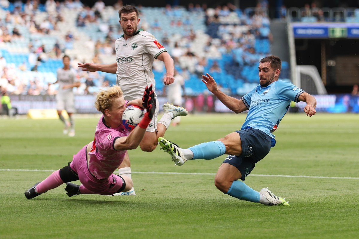 Sydney FC’s Devenish-Meares was the first keeper called into action when he dived full length to push an Armiento shot wide in the 8th minute.